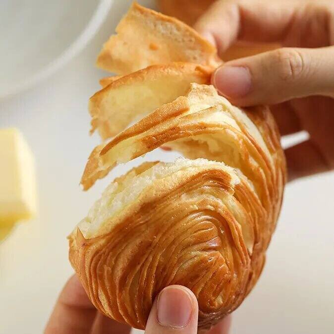 ✅24层酥皮撕着吃,0反式脂肪酸超安心,放弃了廉价的起酥油,改用更高品质的安佳黄油,采用低温发酵搭配反复折叠来起酥。吃起来不仅奶香浓郁,放凉后口感也柔软依旧,不容易腻~