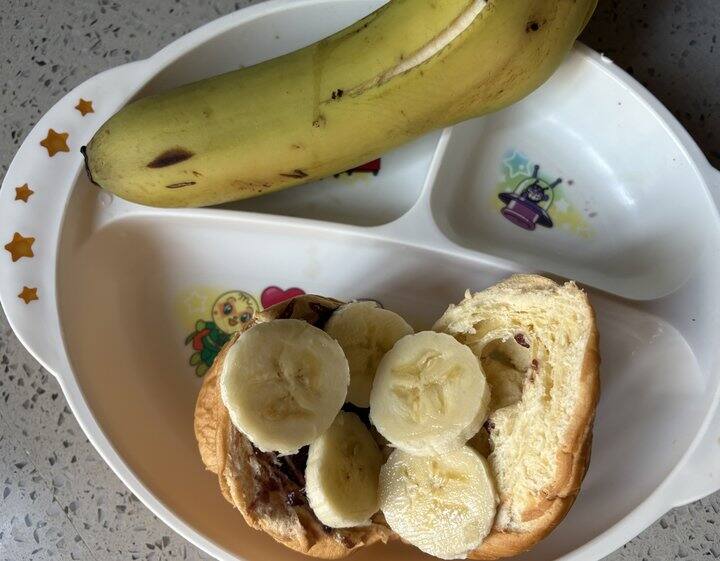 小贩昨天收到的样品,生产日期是11月11号的,口感是偏扎实的,家里小朋友说是香甜口感~,今早做的面包夹香蕉蓝莓酱,香蕉也是我们自己开团的,这样的黄的程度口感就很好了~