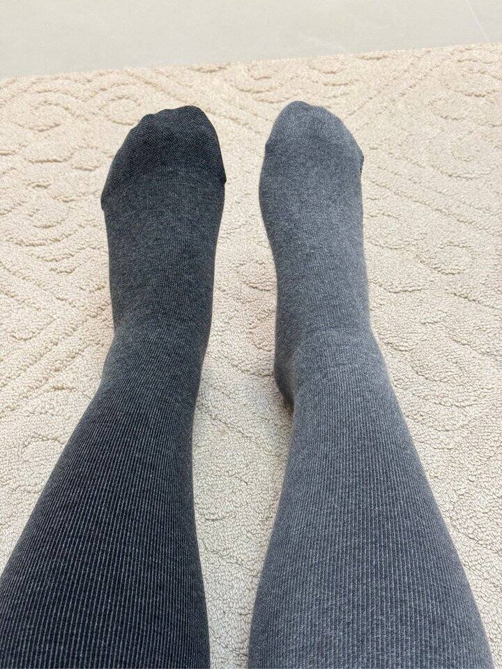 2️⃣图一到图三是腰部和蘑菇头部分细节图。腰部不勒,穿上感觉微压,我不喜欢松松的感觉,微压正好。脚尖处的缝线还是能感觉出来,但不明显可以接受。