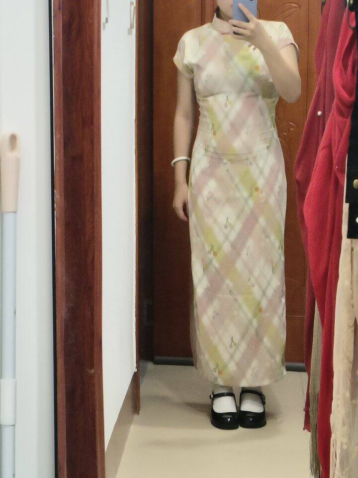 4.春日配色旗袍,很嫩的颜色,但又不会太艳太亮,还是比较日常的,面料比较薄,领子感觉有点不对称,后背肩胛骨那块有点松了,侧面看有点堆积,穿件针织开衫就行了。很可惜,这款没有了,当炫耀