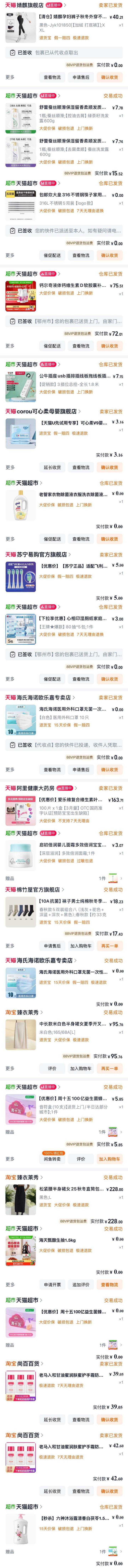 淘宝是刚需买得比较多,这次的9折券前后浪费了9张都没花掉,因为打折力度一般。37.84入的婧麒打底裤,充了购物金所以0元;15.52两瓶舒蕾洗发水,消耗品放心囤;12五双炊大皇不锈钢筷子,把家里竹筷扔了,太容易发霉了,还是不锈钢安心;79.9返12猫卡买了3瓶钙尔奇液体钙胶囊,刚需;14元的公牛插板,也是刚需;4.9元120抽可心柔云柔巾,昨晚最后10分钟为了消耗红包买的,普通的价格;9.9元1升的老管家衣物消毒液,也是昨晚为了消耗红包随便买的,反正也是刚需;12.6元4支飞利浦同款电动牙刷刷头,也是刚需消耗红包,这玩意只用得起平替版;17.8元5包80抽湿厕纸,消耗品无脑囤;冬天到了办公室很多人感冒,买了口罩备用;163.71买了100片的爱乐维,之前在妇幼走医保买的30片要78.8,吃完了刚好网购的也到了直接续上;11.3返3猫卡买了一罐启初,母婴都可用;18.8给队友买了5双棉竹屋的棉袜,质量挺好;在直播间199买了一件男款鹅绒服,挺划算的;79买了一件鸭绒马甲,但是收到货价签上贴的建议零售价60,瞬间心塞塞,但是款式我觉得还可以就还是留下了;两单周十五蜂蜜露,16块多12支,前一条路况分享过,真的是孕期便秘救大命的东西,用完接着囤;7.9一瓶的海天生抽,一大桶好便宜;给队友囤了20瓶老马入和甘油蜜,也是刚需消耗红包,常年当身体乳用的;25返5猫卡的六神沐浴露,刚需用了红包和猫超卡赠金0元购了。