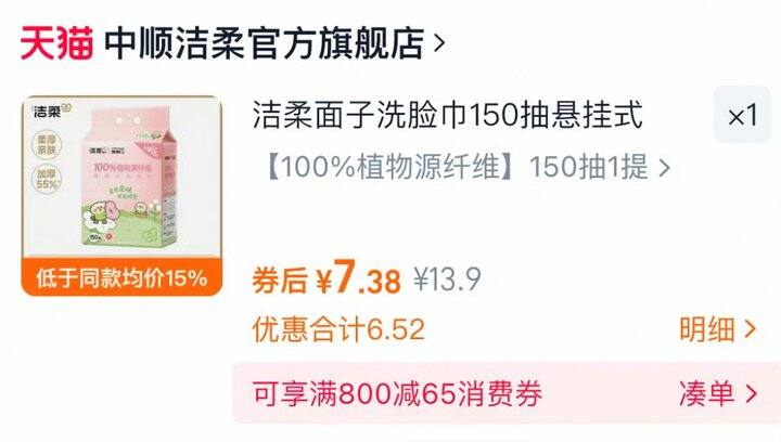 洁柔面子洗脸巾一次性悬挂式150抽干湿两用