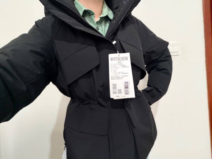 原相机直出。包装用大📦装的,还送了收纳布袋子。原始状态和收紧绳索,显腰身,我觉得都挺好看的。衣服没有异味,稍微有一点点重量。纯黑色很单调又不显气色,准备copy张元英的穿搭,买了狐狸毛围脖。