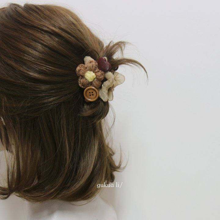 GUKUA LI 2025秋季新款美拉德毛绒花五星抓夹发饰头饰
