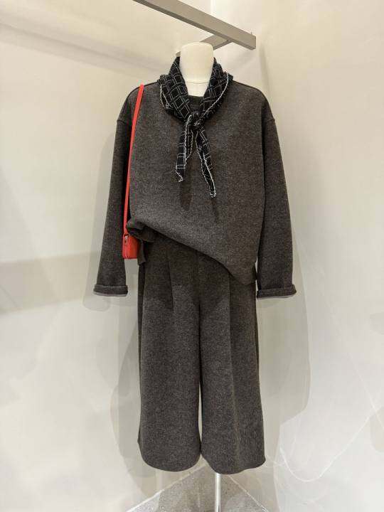 简约高级丝巾卫衣八分裤套装女秋季新款休闲宽松上衣阔腿裤两件套