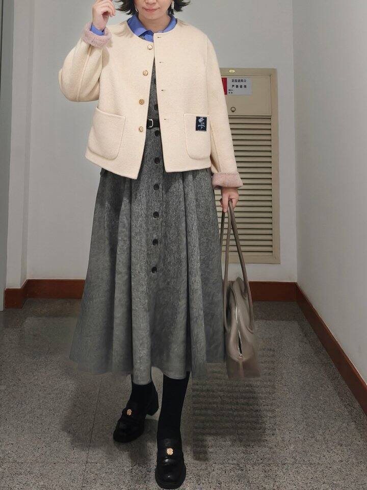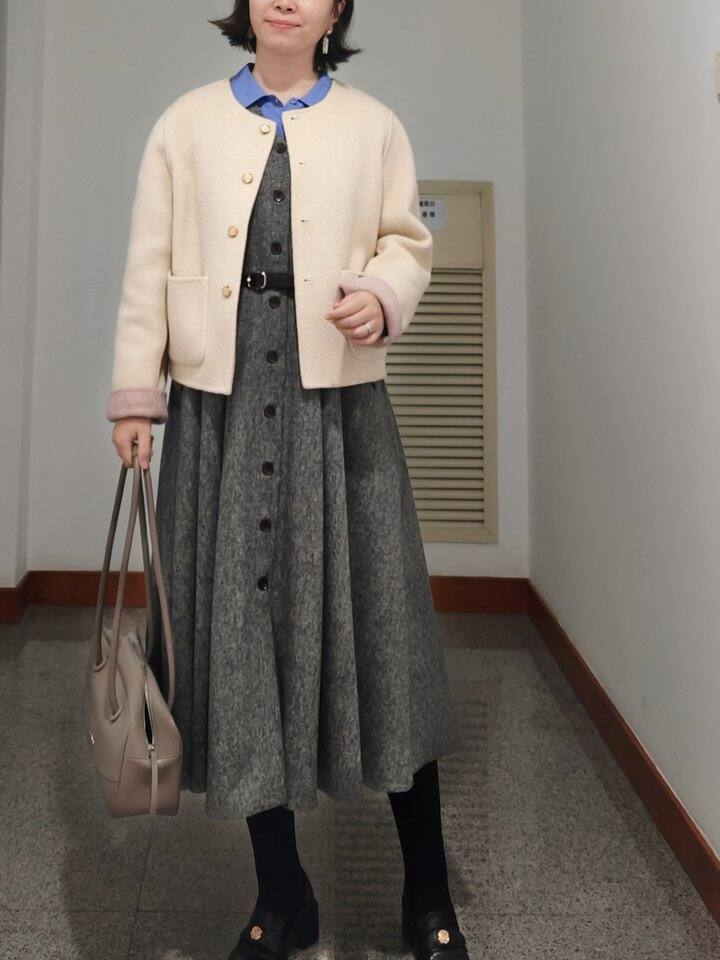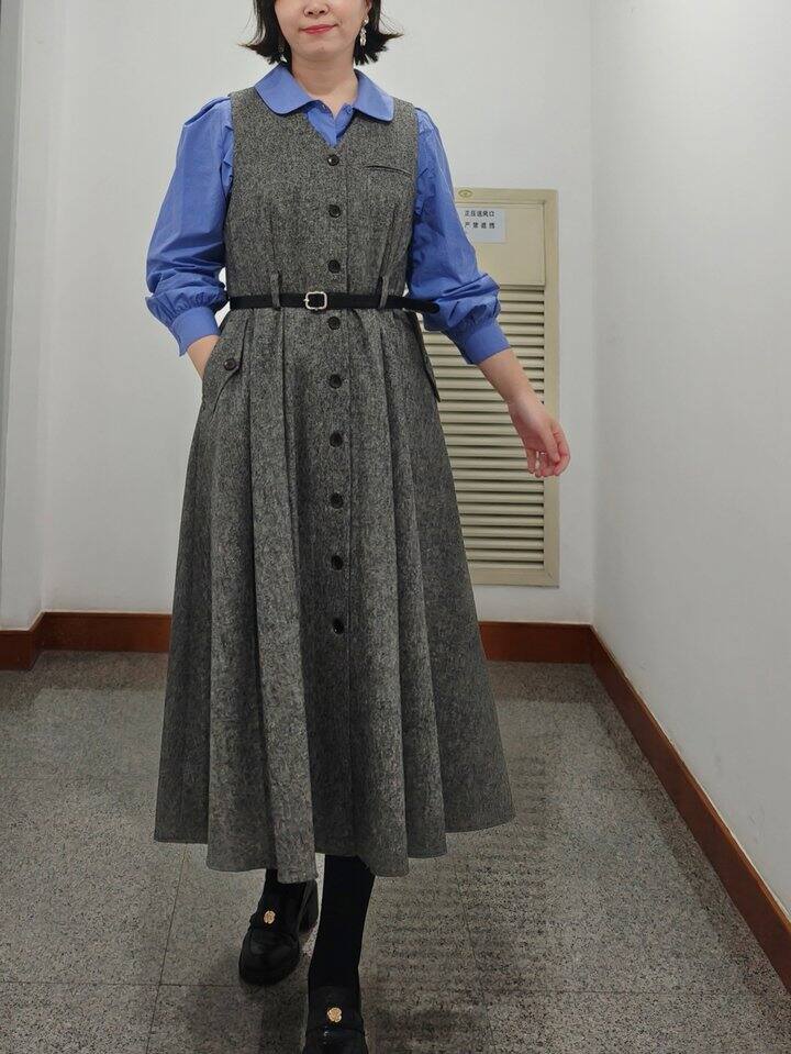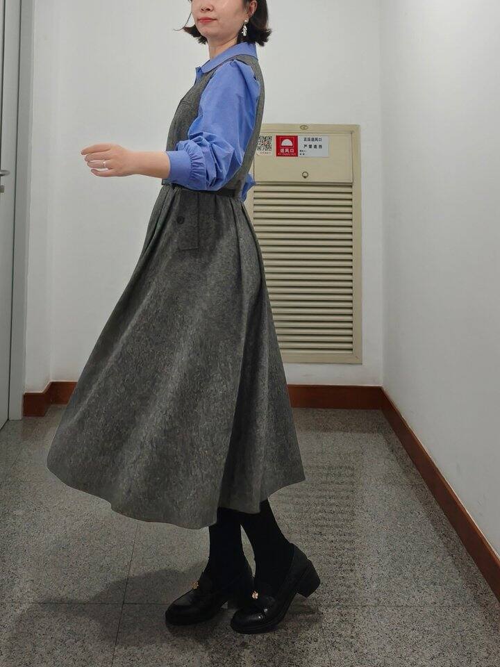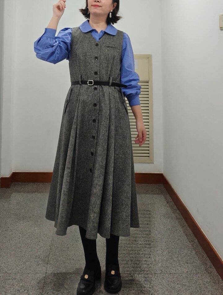 Daily Look 灰色背心裙与蓝色衬衫也很配