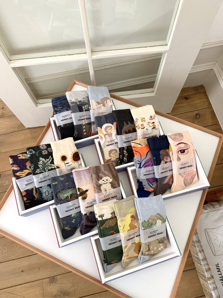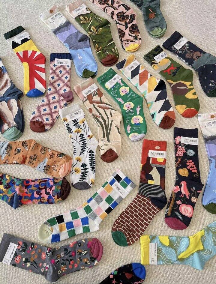 材质是软软的棉混纺,上脚舒服不勒脚,图案印花细腻不掉色