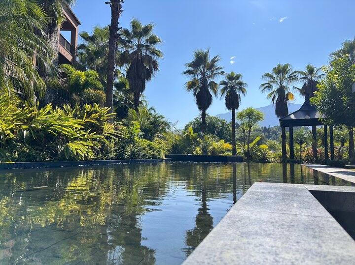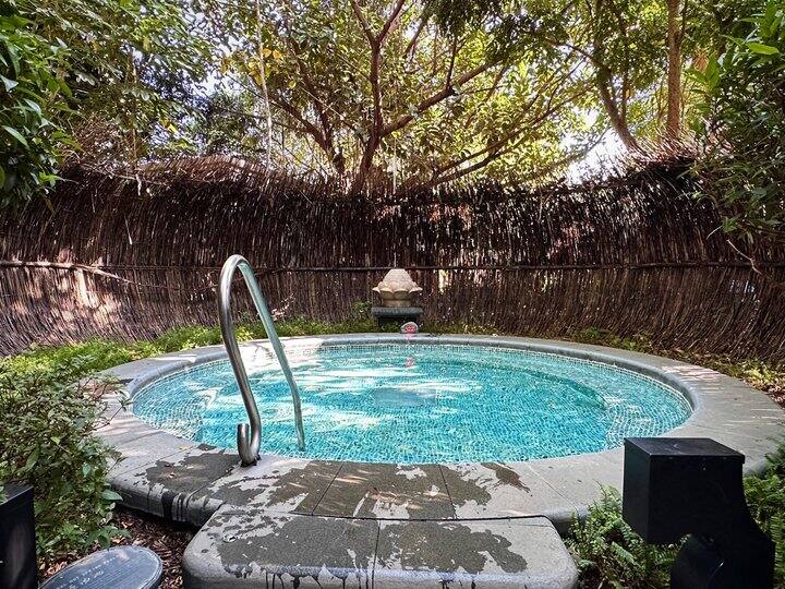 喜欢这种小小的池,隐私性高,还能不同口味(椰奶、红酒、生姜、人参、绿茶之类的)的轮着泡虽然天气还挺暖和的,但泡泡温泉也很舒服,就是差点又把自己给整堵奶了,大半夜在酒店空心掌拍拍拍😂