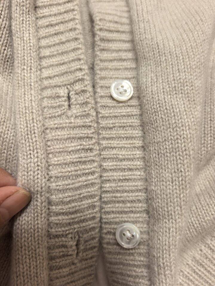 做成开衫,缝了这个纽扣,我老公说好丑[哭笑]
