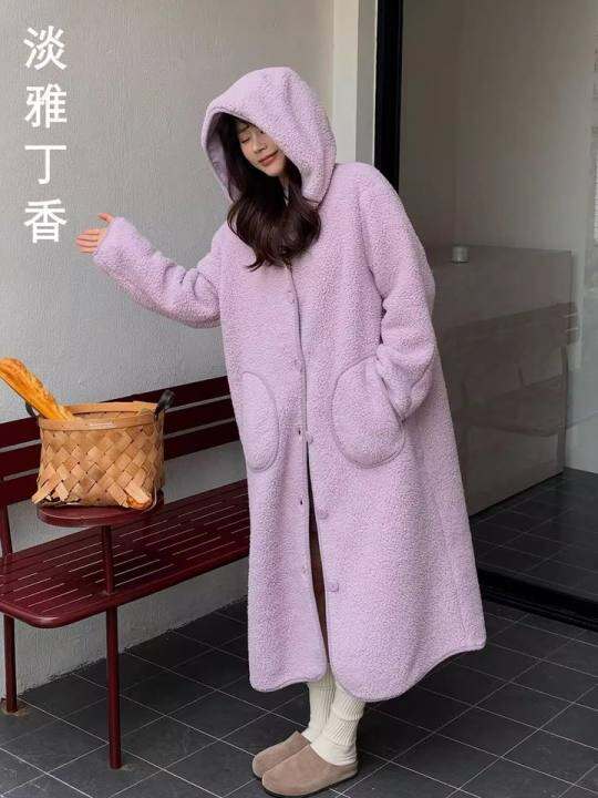 超好看CaCa羊羔绒连帽睡袍家居服女秋冬加厚保暖舒适甜美毛绒外套