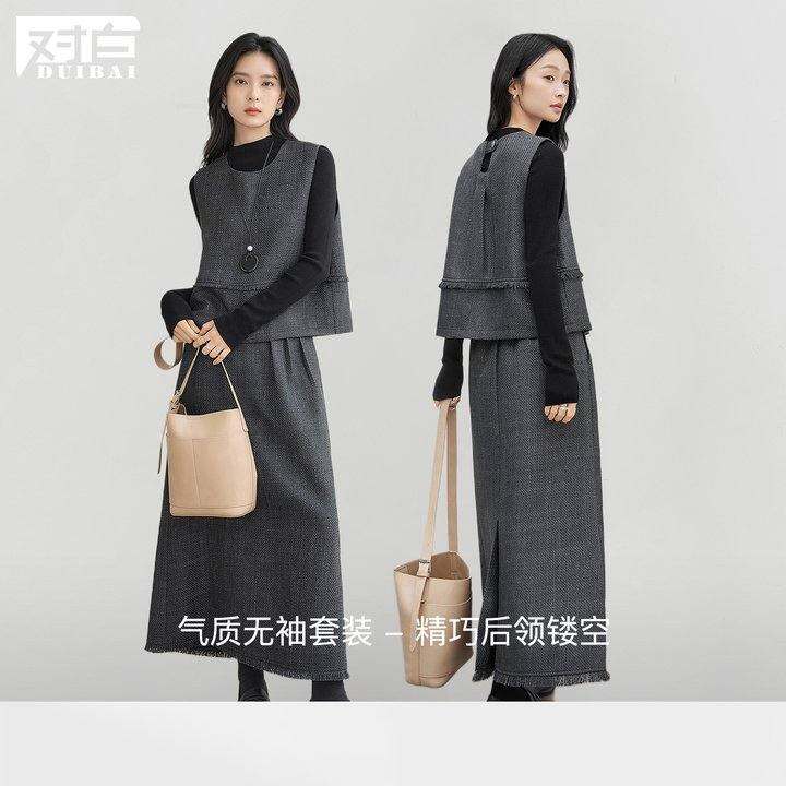 对白覆古粗花呢背心套装裙女2025秋新款毛边半身裙高级优雅两件套