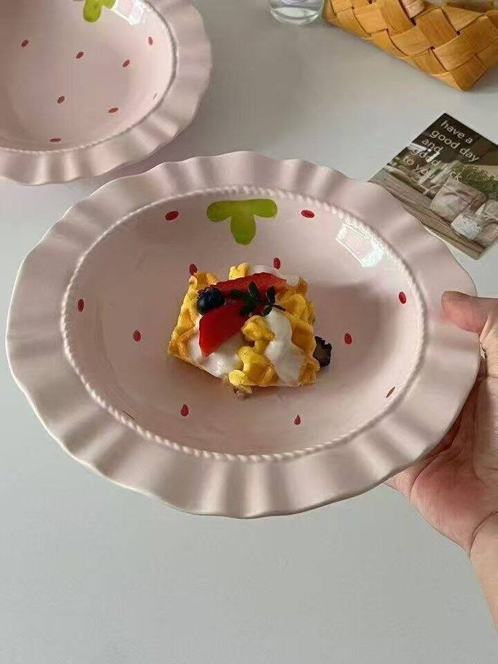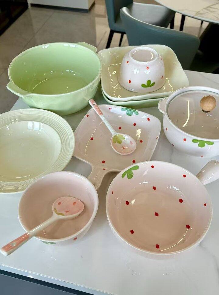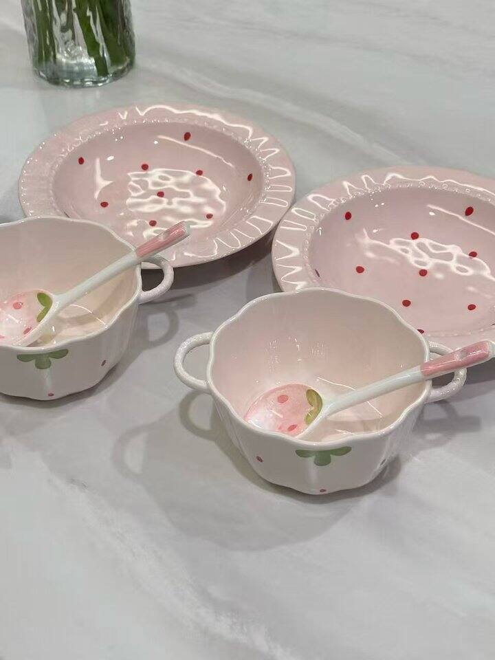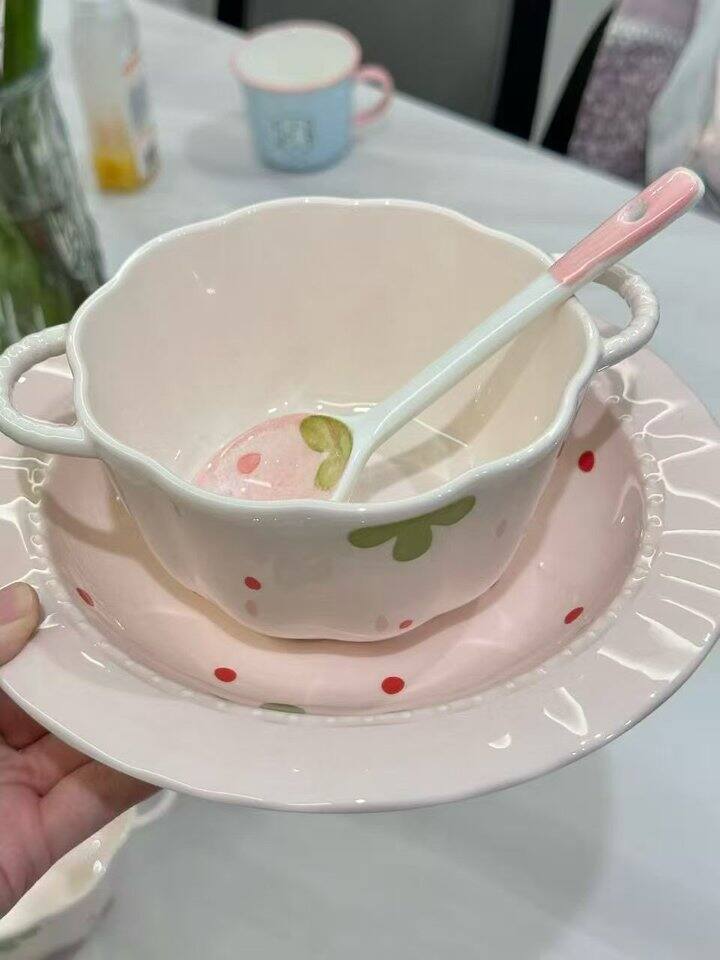 11.9💰浅粉草莓双耳碗(共2碗2勺)