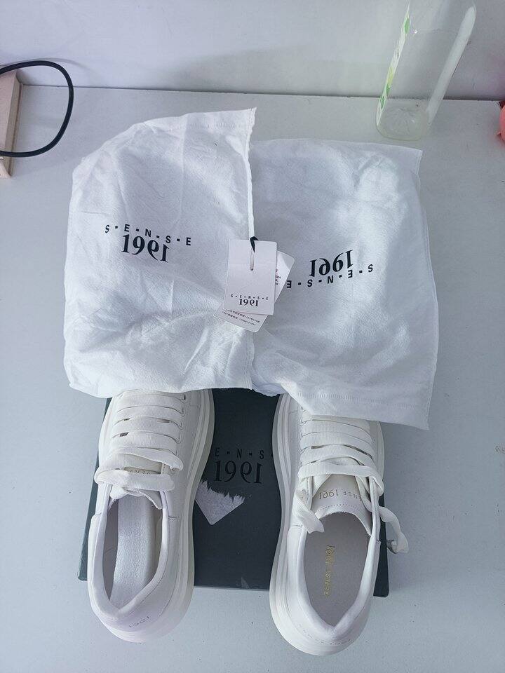 1991女鞋 小白鞋 38码 就穿一次,基本全新,非偏地区89包邮。在直播间好不容易抢到的[破涕为笑],我脚胖,有点卡脚,这家牌子鞋基本在三四百左右。鞋子外牛皮,内里羊皮