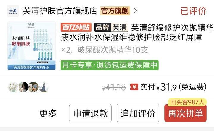豆瓣妆组种草,抹完干了之后脸有点拔干,修复效果没什么感觉,不如之前买的依泉修复精华,不会回购。