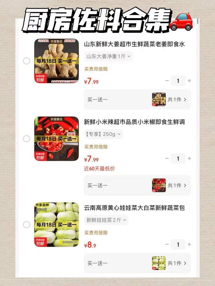 大蒜和生姜都可以备起来!做菜几乎都能用到!看实拍品质真的很不错!还有小米辣和娃娃菜!