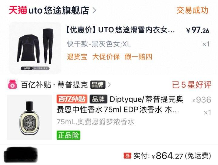 1.uto悠途 滑雪徒步保暖运动速干衣:有买大一号,确实比较刚好,个人建议胖子还是买大一号吧[鹿哭]爬长白山的时候穿了,11月初0℃±5,穿这个再加厚羽绒外套,还挺保暖的,因为爬山会热,虽然风很大,晚上逛街就不行了,会冷。布料不错,穿着舒适。2.蒂普提克 奥费恩/爵梦:之前用过小样(可能是盗版)很喜欢,最近突然就很想拥有正装,国庆后比价了一下就迫不及待就在并夕夕入了,但其实应该再等等,等到10月底大促,狗东有圣诞版的活动,金色瓶子很好看,赠品也挺多的,折算下来正装价格会稍稍贵一点,但是比较不担心假货吧。并夕夕这个我也是很忐忑,收到后搜了辨别真伪的帖子对比了下,我觉得应该是真的。