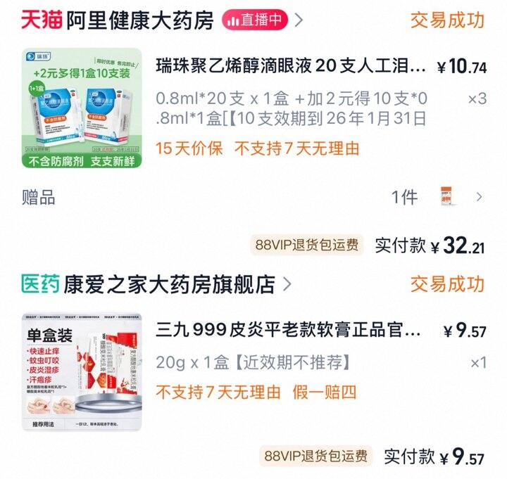 4.瑞珠 聚乙烯醇滴眼液/人工泪液:之前都是用海露0.2浓度的玻璃酸钠滴眼液和另一个牌子的海藻糖滴眼液,以前用着都很舒缓,最近有点用麻了没感觉了,就试试人工泪液。目前感觉缓解疲劳干涩效果不错。5.999皮炎平:止痒效果不错。