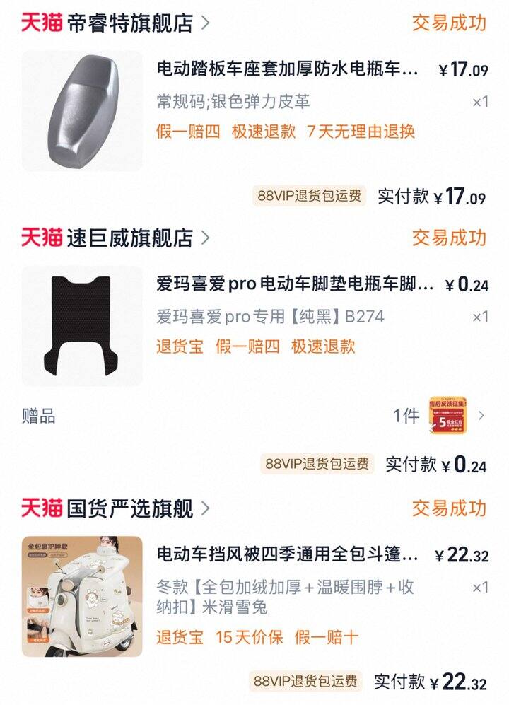 4.电动车座套:在他家买了好几次了,这次换车继续买,个人感觉银色+皮革的材质比较不吸热,所以丑就丑了。5.电动车脚垫:有点大了,回来自己又修剪了一下,这么便宜就不计较了。