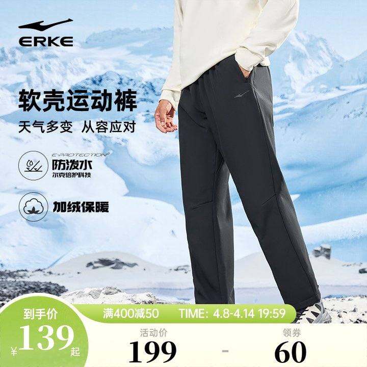 鸿星尔克加绒运动裤男春秋新款直筒户外防风滑雪软壳裤长裤