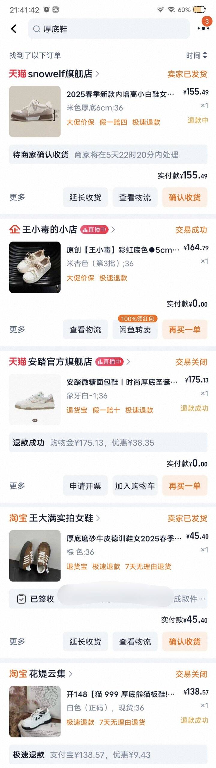 熊猫厚底鞋,这双我是在实体店299随便试一下后再网上找的。高度确实有6cm,但看起来高得离谱,真的像踩着一块板砖,重量也超重480g,退货也超首重了。