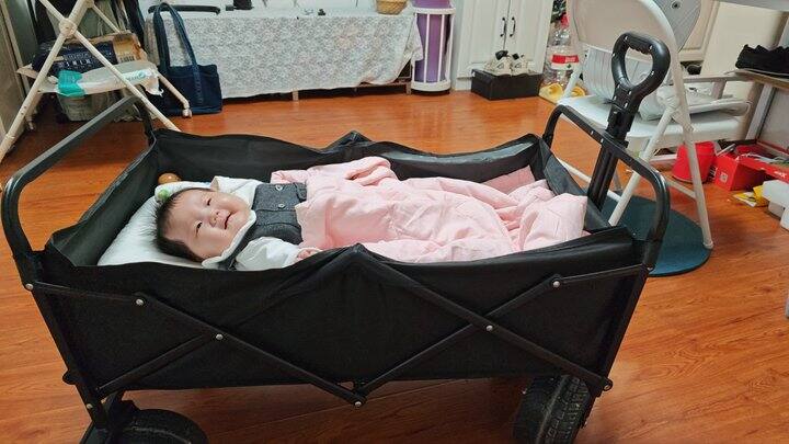 家里空间太小,实在放不下婴儿床。参考小红书,买了露营车和床垫代替。真的蛮好用,小孩子很喜欢坐