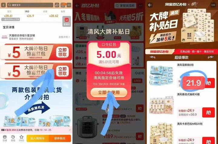21.9💰到手 清风卡皮巴拉联名湿厕纸60抽*6包
