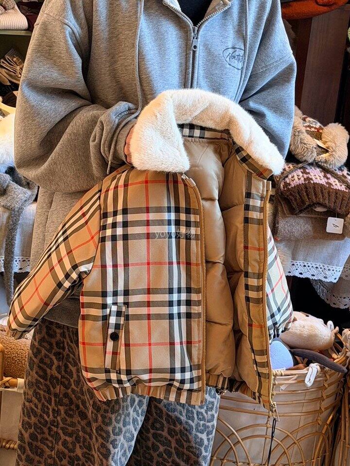 英伦格纹毛领儿童棉服!💰59.9