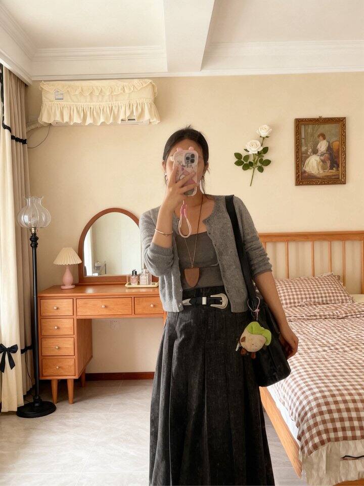灰色开衫之前分享过,内搭带bra的吊带是椰丝里里