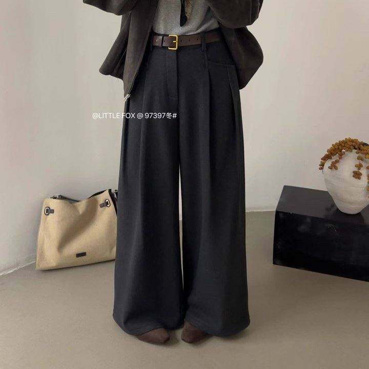 小狐狸LittleFox 97397冬天显瘦毛呢料加绒阔腿西装裤子拖地裤女