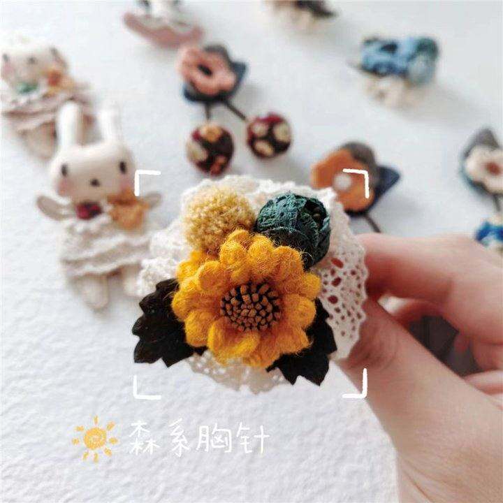 可爱甜美小清新森系少女小花草莓蕾丝花朵小兔人偶胸针别针配饰