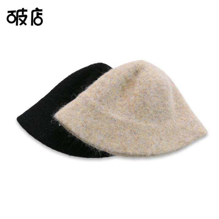 纪念日百货 破店 简约羊毛针织渔夫帽女2025冬季圆顶可折叠盆帽