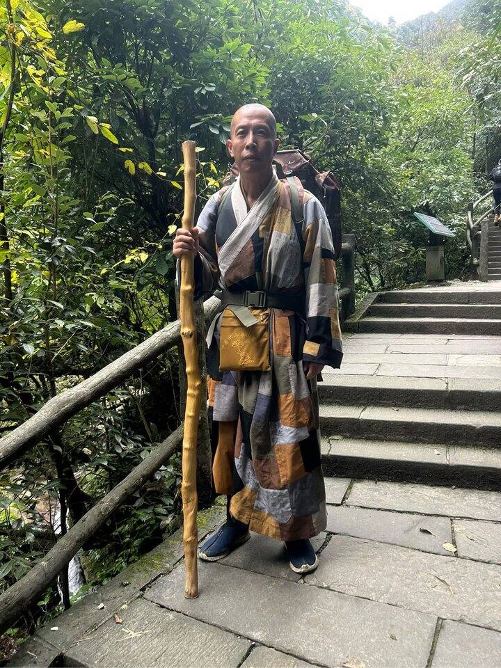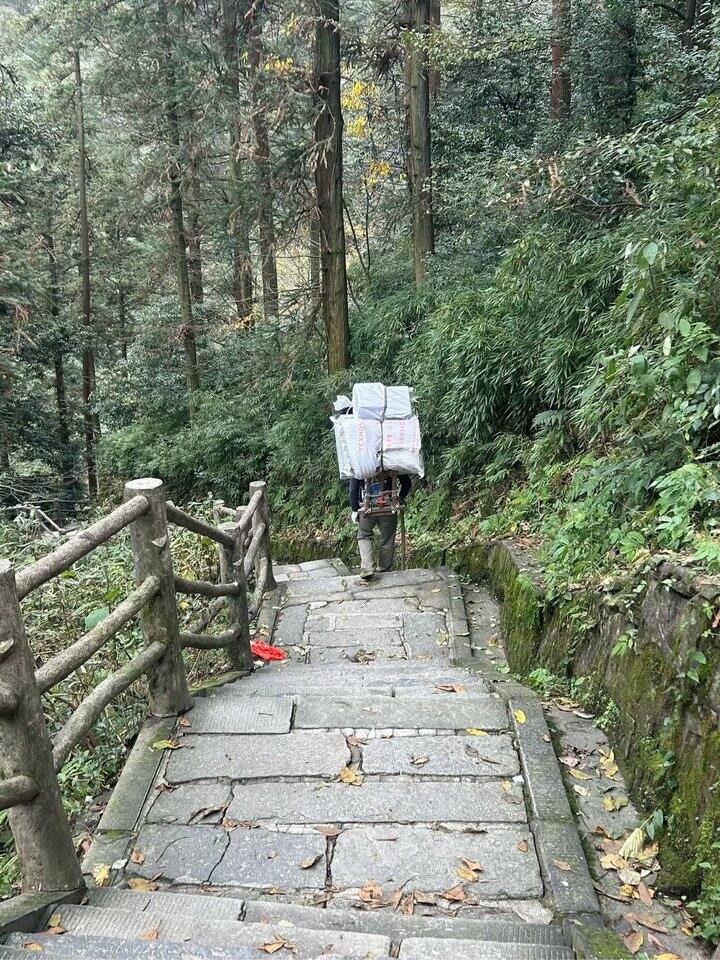 护膝+登山杖焊死!九十九道拐的台阶能把膝盖送走,全靠它们续命。