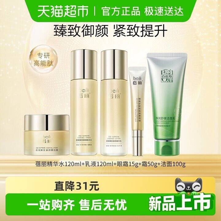 TB【67.55】百雀羚.蓓丽臻致御颜精华水120ml+乳液120ml+眼霜15g+霜50g+洁面100g,需叠加8.90淘礼金