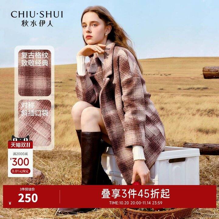 秋水伊人复古格纹宽松羊毛大衣227.86https://s.click.taobao.com/jFwUKZp