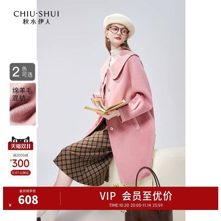 秋水伊人奥莱甜美绵羊毛桑蚕丝毛呢大衣397.01https://s.click.taobao.com/cdBJKZp