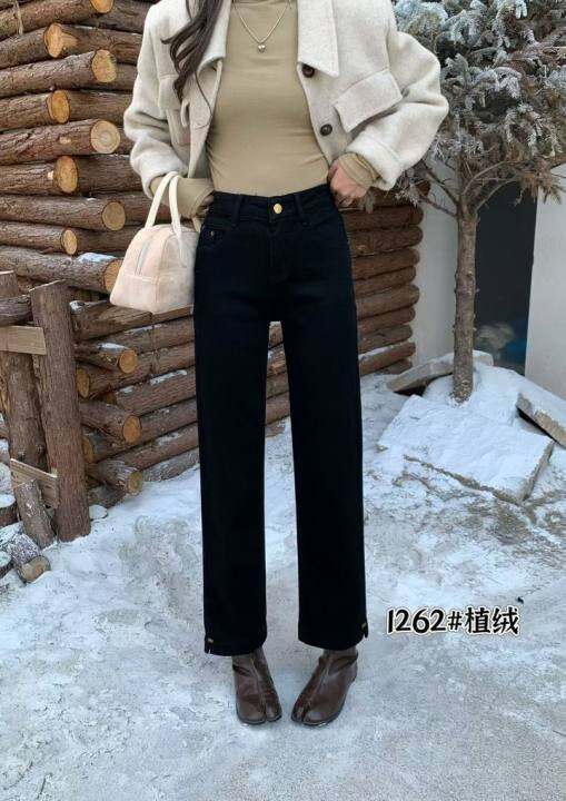 2025冬季森缘新款高腰显瘦加绒加厚牛仔裤女宽松百搭直筒阔腿长裤