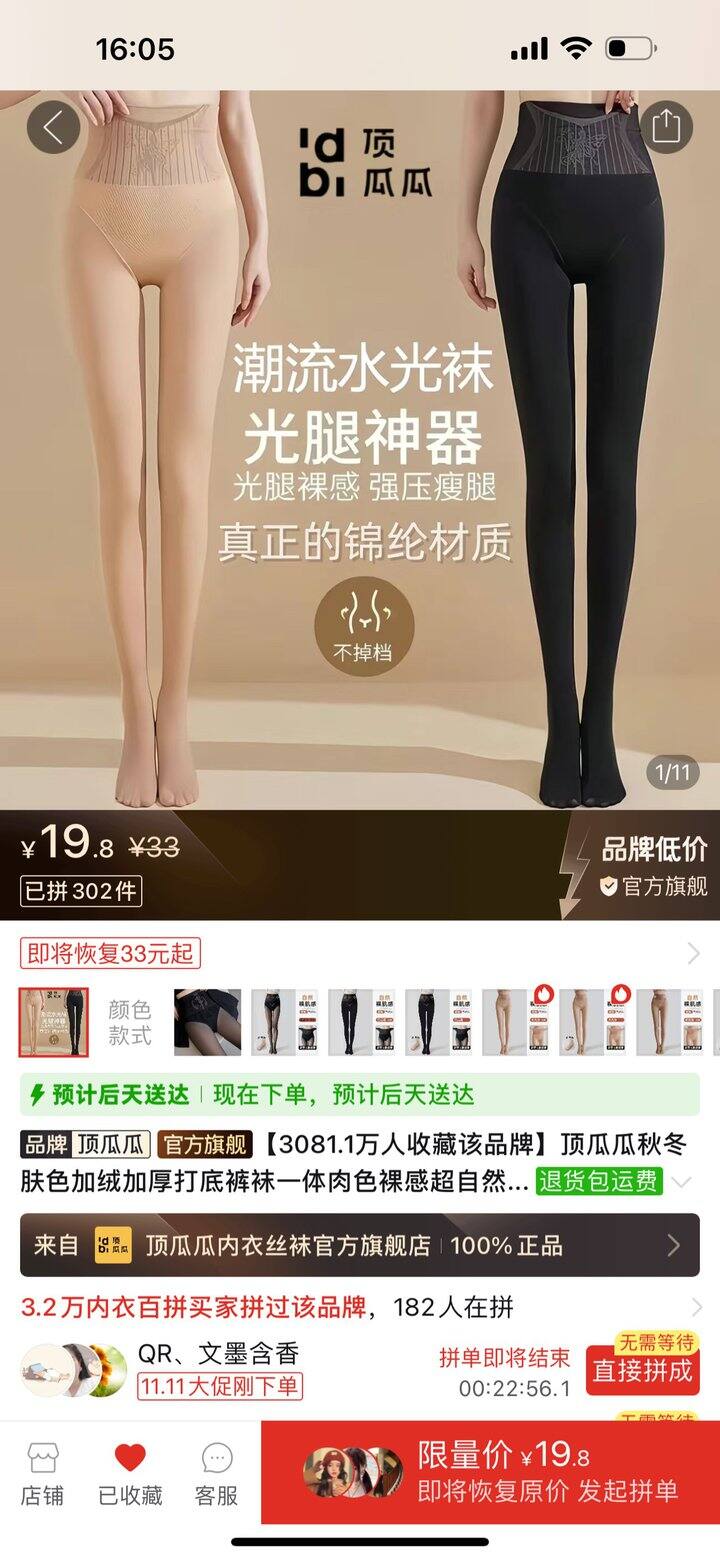 冬天到了打底裤必不可少,今年再一次提醒自己不要买寻觅橘子家的打底裤,去年买了三条都是一次性的,有一条甚至刚试穿就被扯裂了,有一条穿了一天后觉得还好,晚点洗澡时候脱下来一看屁股那里已经变得松松垮垮的了。[哈哈][哈哈][哈哈][哈哈]因为都是拿到手觉得不错就确认收货过了几天才拿出来穿的所以没法退换了。今年先观望观望。不知道这款顶呱呱的咋样,话说我一般都喜欢买踩脚的,连脚的感觉穿久一点就脚趾头又麻又酸疼,而且还有人说被勒出甲沟炎了。