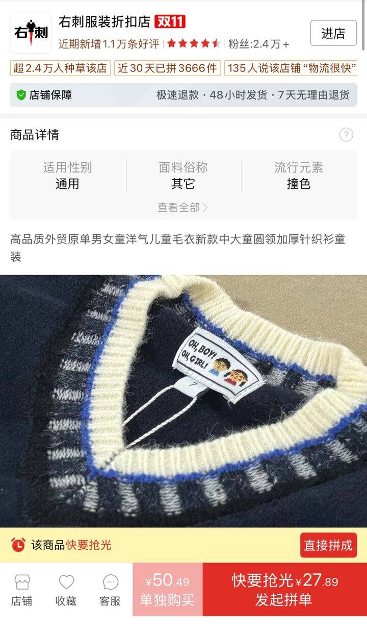 这个校服毛衣打折了 非毛的哈 中厚。降价了哈 只有咖啡色。我又买了一件大的。拼刀刀的 小童的。