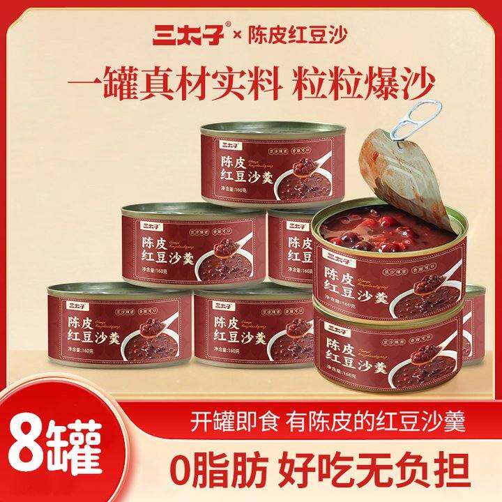 三太子陈皮红豆沙羹8罐装代餐速食粥免煮上班可携式早餐甜品罐头