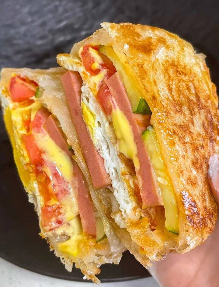 没有比手抓饼更容易做的了~连油都不用放,3分钟就好!!饼皮酥脆,层层起酥,做起来超简单,随便煎一下加点料就好了,在家做个早餐夜宵啥的很方便,比外面买的干净!