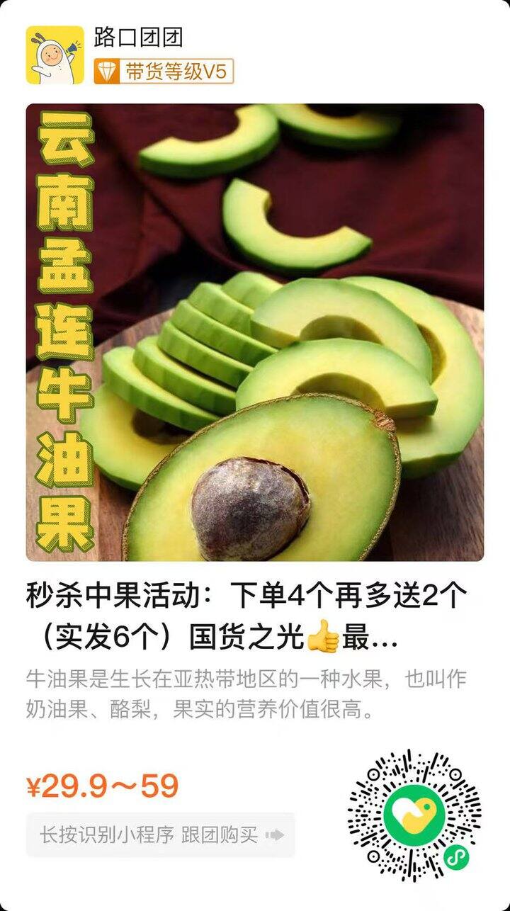云南孟连牛油果【再多送2个】实发6个 中果 29.9元