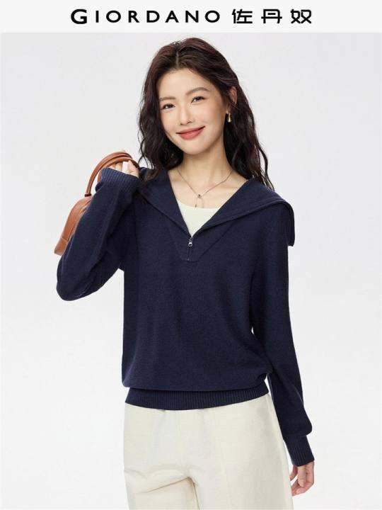 佐丹奴假两件针织衫女秋冬新款撞色宽松海军领针织上衣女13355782