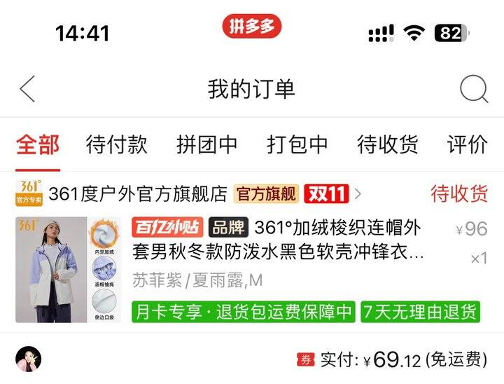 这种感觉不太像冲锋衣那种滑滑的面料,说不上是什么,但是颜色挺好看,干干净净的。里面有一层薄绒,但是现在这个天气也穿不了了。