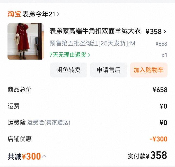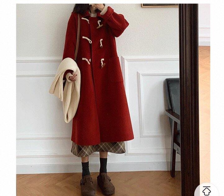 表弟牛角扣双面羊绒大衣女小个子2025秋冬新款高级中长款毛呢外套,m码,60包邮出,红色不适合我了,只穿过一次