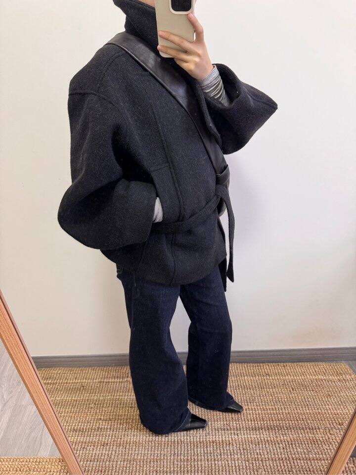 之前买过一件但是面料版型都不如这件,这件是50%羊驼毛和50%羊毛,摸起来很舒服一摸就知道是好料子,而且版型应该是经过多次打版的,原版那种有些毛茸茸的感觉也做出来了,感觉还原度挺高的,一上身立马留下了。这件大衣特别显气质,把头发扎上去会显得头小小的很有精气神。披着头发又会很文艺,很有lemaire的感觉。或许我拍照没有拍出它的美,现实看真的会好看很多,是穿出去就会被朋友疯狂夸的大衣!真的值得入!