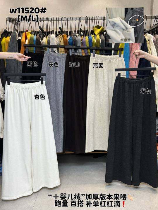 VI+唯一家冬季加绒加厚糯米松紧腰休闲裤阔腿长裤女加婴儿绒11520