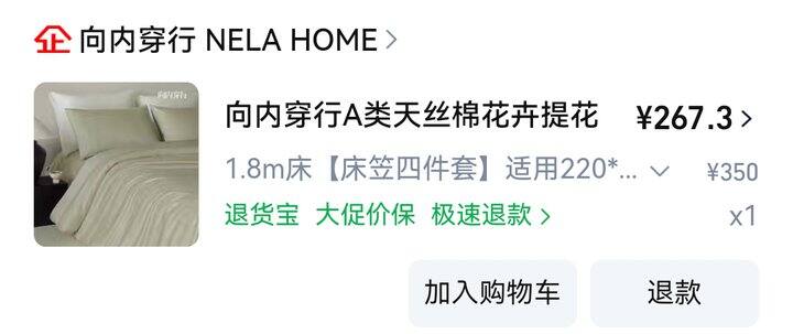 顺便夸下内外穿行家的床品,双十一我才花了267块,天丝+棉的成分,我可太喜欢这个成分了,丝滑软糯,用过就不想再用全棉的了,我之前在别家买天丝棉,花了500多,品质不相上下,我最近在内外穿行家买过一个床笠,三套床品,一个被子,品质都非常ok,包装也很好,顺丰送到家,性价比很棒,可以在大促的时候蹲蹲他家直播间。
