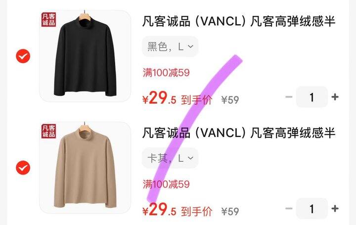 2️⃣ 凡客诚品(VANCL)纯棉长袖T恤,任选1件加购https://u.jd.com/WgDTfVH