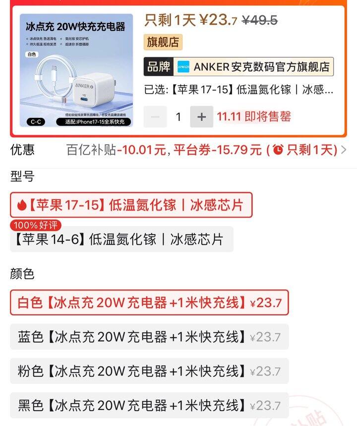 Anker安克冰点快充30W苹果15充电器iPhone16/17Promax快充头套装