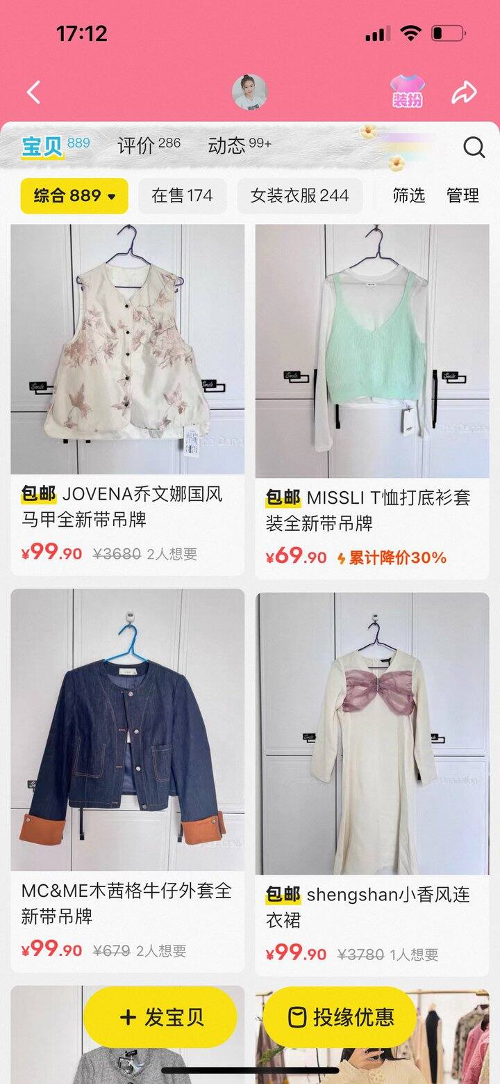 我也想出,家里衣帽间放不下啦,都是专柜买的品牌的,一半都是全新带吊牌,专柜都大几百上千两位数都出不掉[失望R]